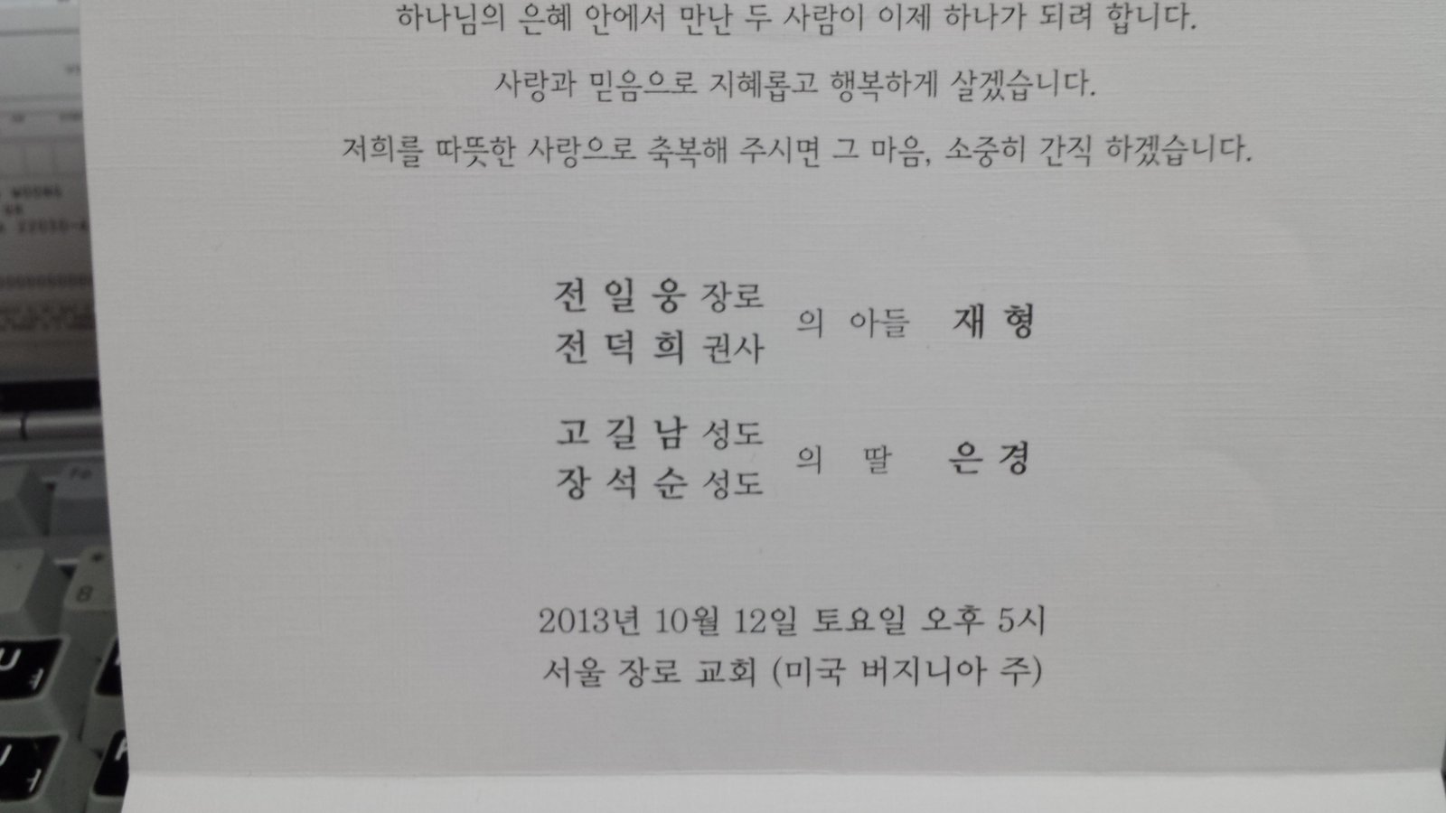 위에 전재형 33기에 결혼식도 함께 알립니다. 많은 참석 바랍니다.