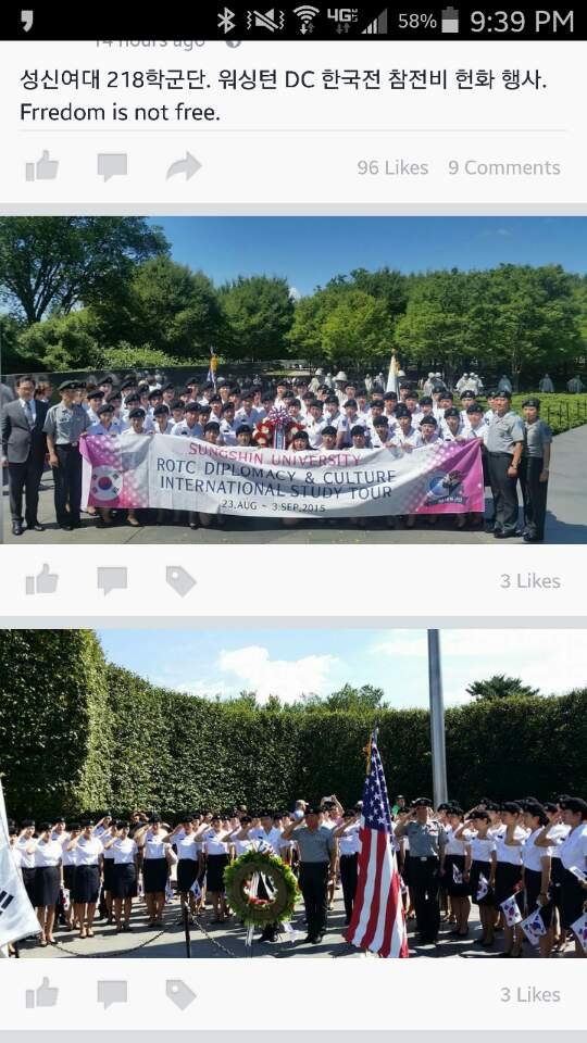 제목 : 워싱턴 방문 성신여대 ROTC 후배들과